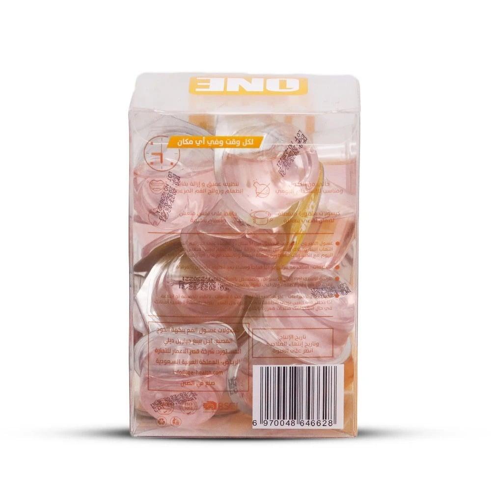 ذا ون غسول الفم بالكبسولات المتطورة بنكهة الخوخ هو منتج مبتكر للعناية بصحة الفم. يأتي في كبسولات سهلة الاستخدام توفر تجربة فريدة لتنظيف وتنشيط الفم.