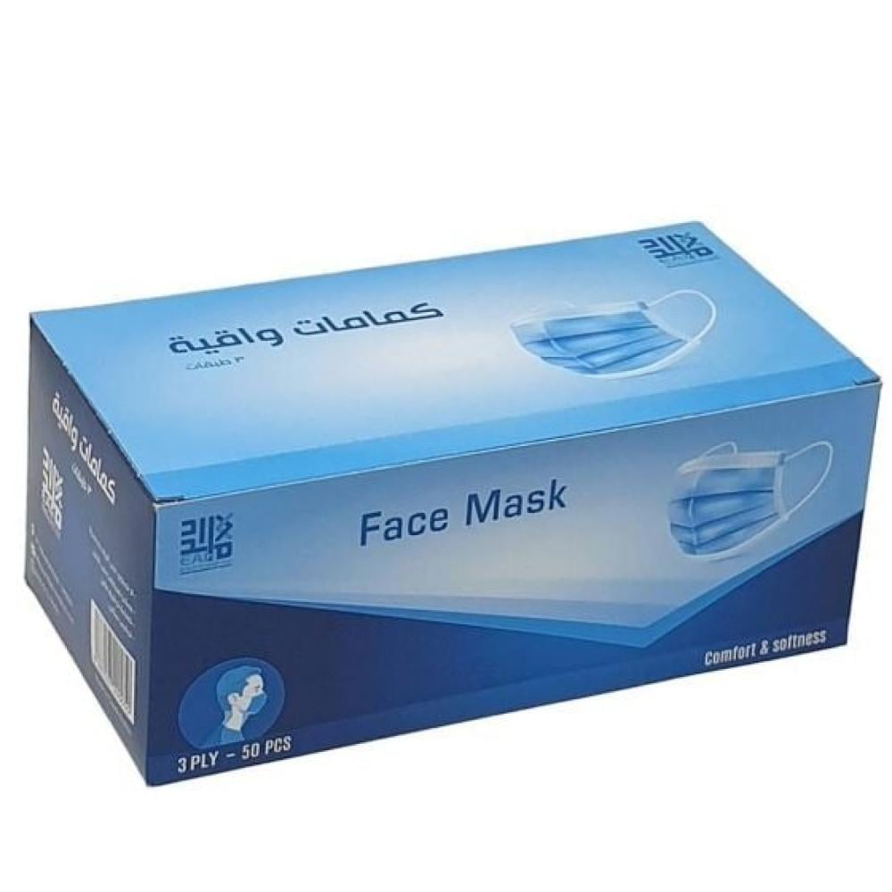 كمامات لون ازرق مريحة في اللبس ذات جودة عالية، تتكون من ثلاث طبقات وتحتوي العلبة الصغيرة على 50 كمامة.