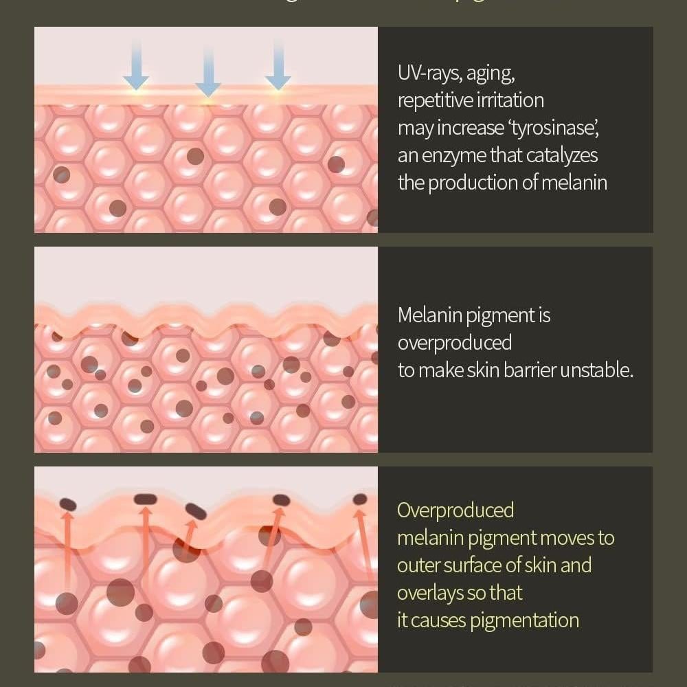 العناية بالتصبغات المفرطة: هذا المستحضر لا يستهدف فقط فرط التصبغ المرئي ولكنه يحسن أيضًا التلون الأساسي، مما يكشف عن بشرة أكثر إشراقًا من الداخل.